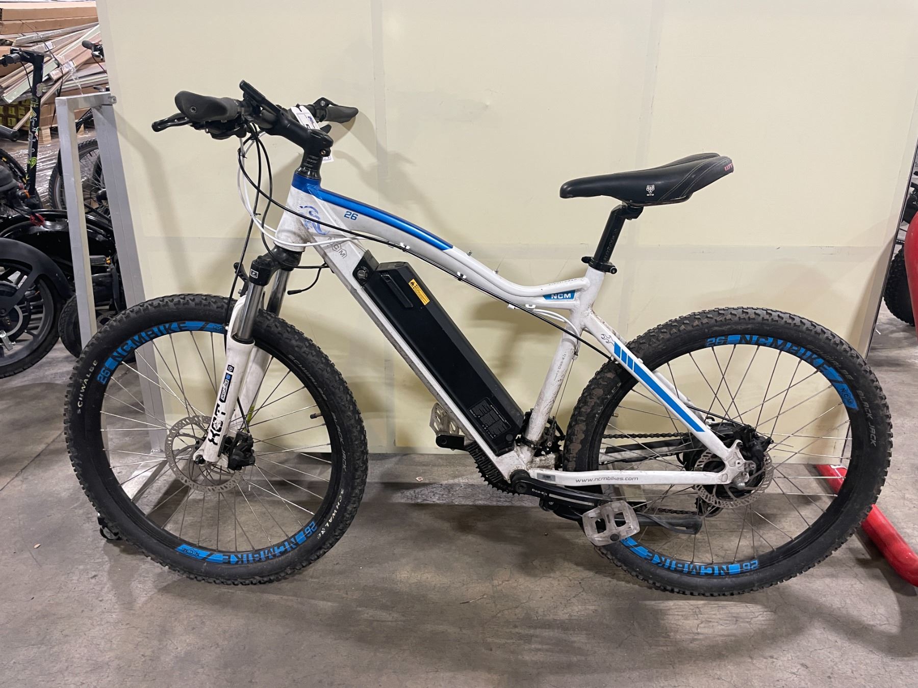NCM MOSCOW 26 WHITE 48V FRONT SUSPENSION ELECTRIC BIKE WITH FULL DISC BRAKES *NO KEY, NO CHARGER, HAS BATTERY*