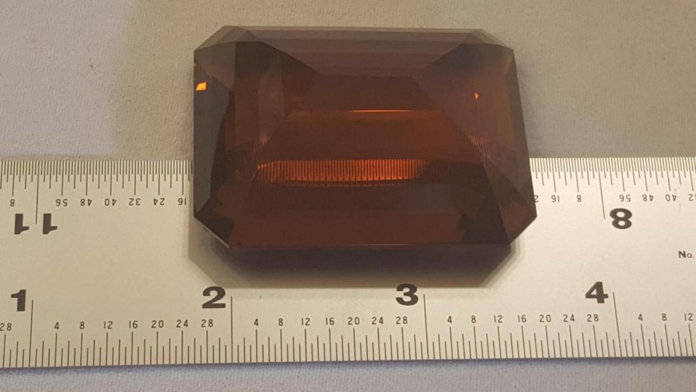 INCREDIBLE 189.05 CT MUSEUM SIZE MADIERA GOLDEN ORANGE CITRINE. DISPLAYING INTENSE COLOR SATRATION WITH A HIGH LUSTER AND A STRONG VIVID TONE. PHENOMINAL CLARITY AND A FINE EMERALD CUT. CITRINE IS ONE OF THE FEW GEMSTONES THAT NATURALY OCCURS IN GOLDEN TO YELLOW COLOR ALTOUGH HEATING THE STONE WILL INTENSIFY THE COLOR CREATING A HIGHER VALUE. HEAT TREATED