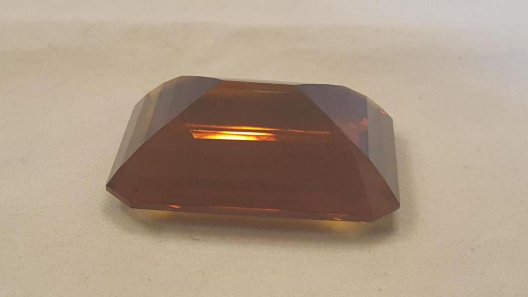 INCREDIBLE 189.05 CT MUSEUM SIZE MADIERA GOLDEN ORANGE CITRINE. DISPLAYING INTENSE COLOR SATRATION WITH A HIGH LUSTER AND A STRONG VIVID TONE. PHENOMINAL CLARITY AND A FINE EMERALD CUT. CITRINE IS ONE OF THE FEW GEMSTONES THAT NATURALY OCCURS IN GOLDEN TO YELLOW COLOR ALTOUGH HEATING THE STONE WILL INTENSIFY THE COLOR CREATING A HIGHER VALUE. HEAT TREATED