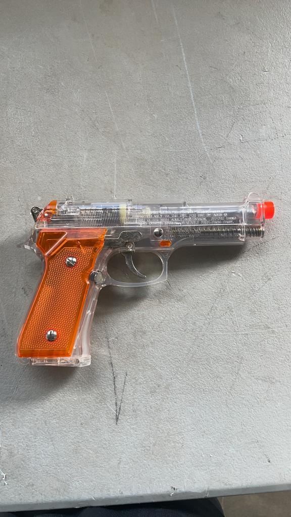 NEON FIRE AIR STRIKE AIR SOFT PISTOL W/ LOTS OF NEW PAPER TARGETS, GOOD CONDITION IN BOX