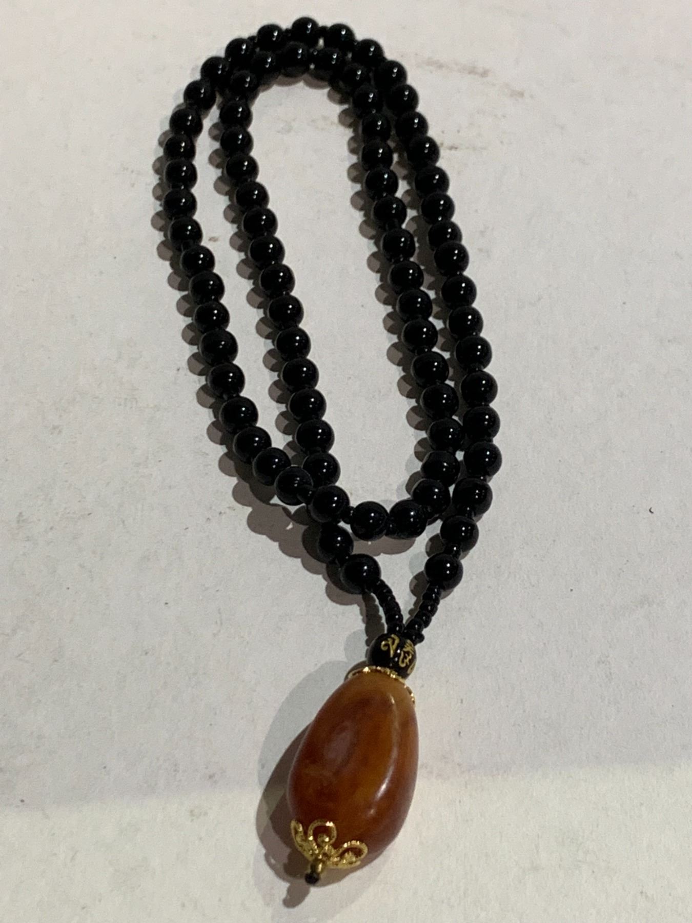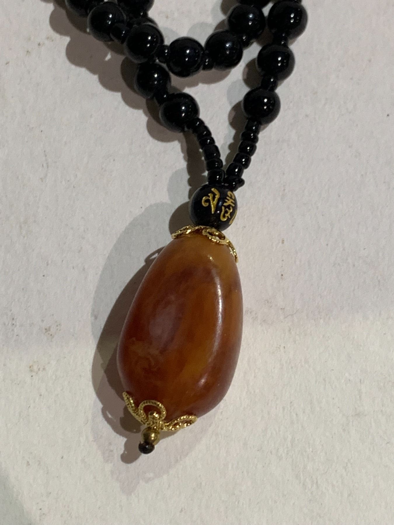NEPAL BEESWAX PENDANT WITH DARK BEAD NECKLACE