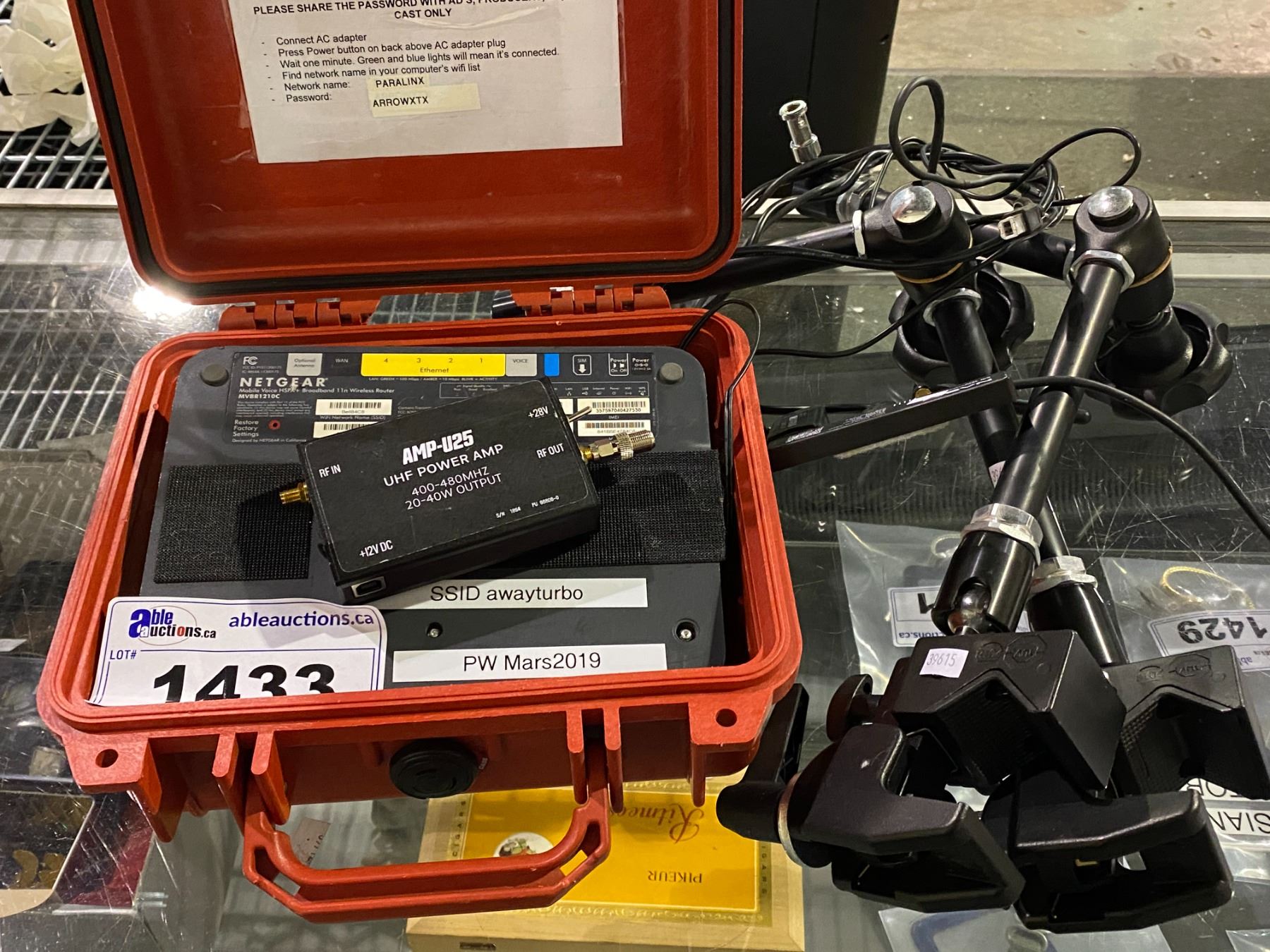 NETGEAR MOBILE VOICE HSPA+ BROADBAND 11N WIRELESS ROUTER MVBR1210C, AMP-U25 UHF POWER AMP, PELICAN CASE, & MORE