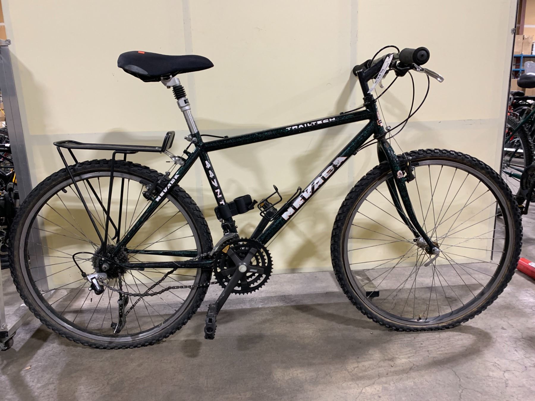 NEVADA TRAILTECH GREEN 21 SPEED MOUNTAIN BIKE *REAR DERAILLEUR NEEDS REPAIRS*