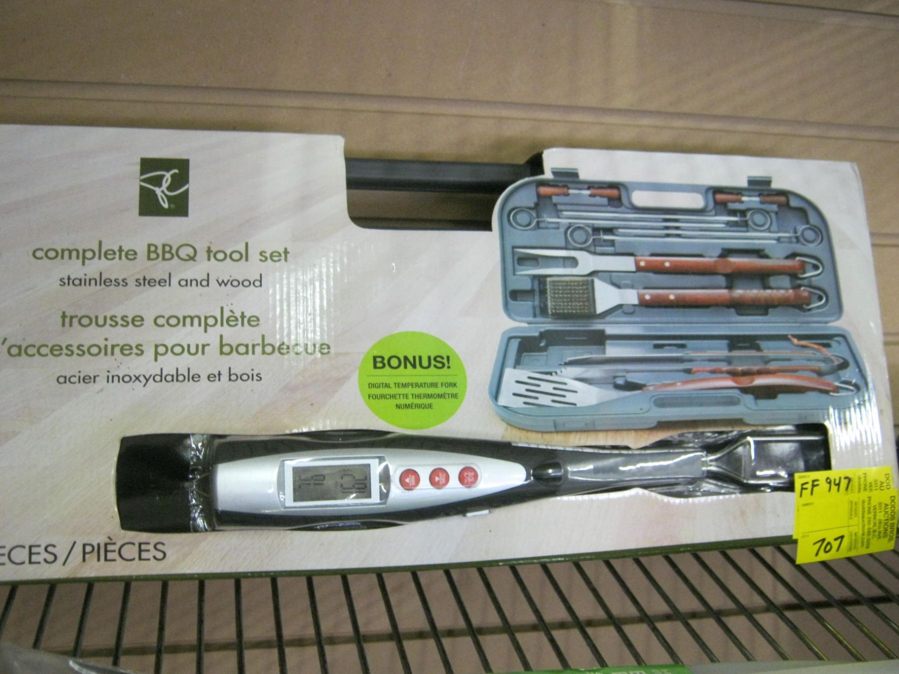 NEW 14 PIECE STAINLESS STEEL & WOOD BBQ TOOL SET