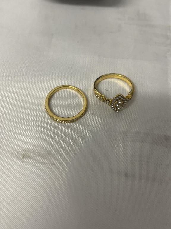 NEW 14K GOLD PLATE SIMULATED DIAMOND (CZ) HALO RING SET, SIZE 8
