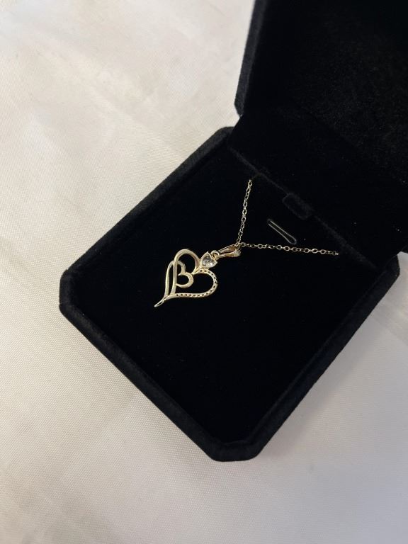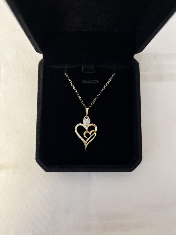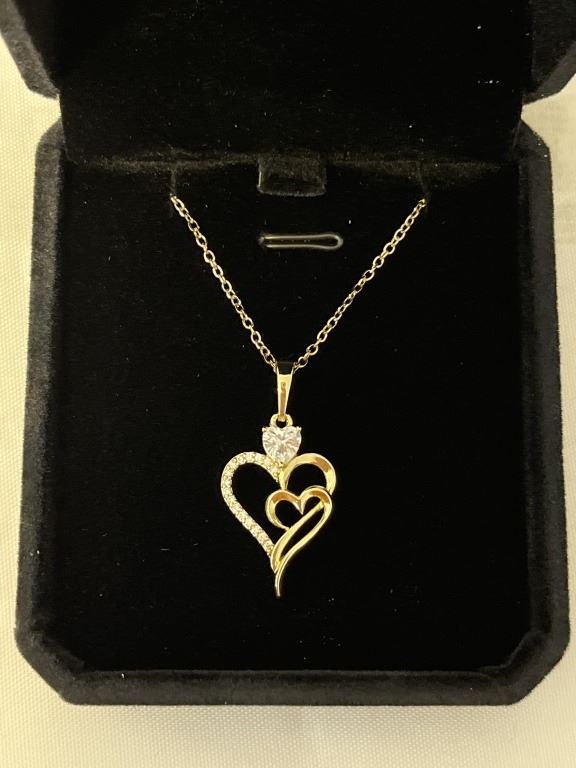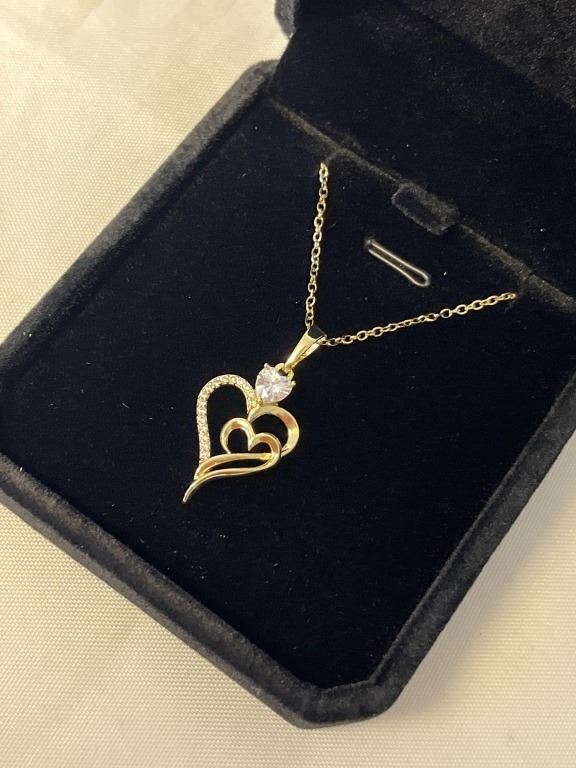 NEW 14K GOLD PLATED 0.5CT HEART CUT SIMULATED DIAMOND (CZ) DOUBLE HEART NECKLACE, CHAIN 18" LONG