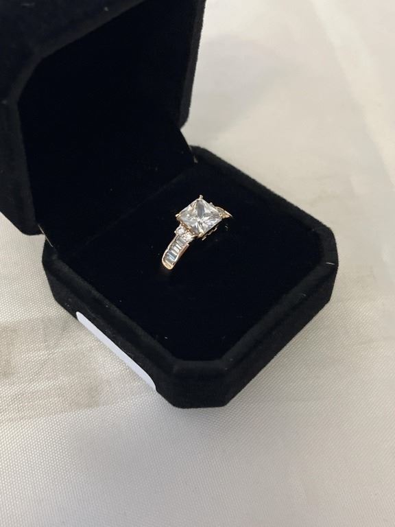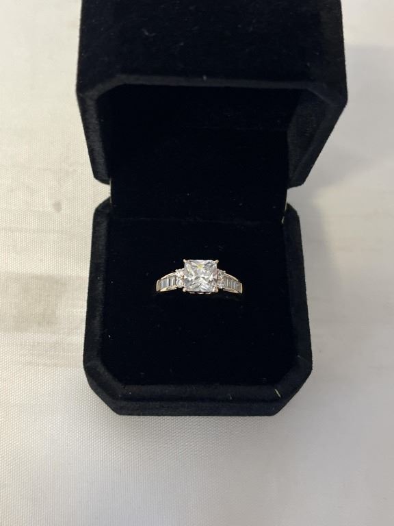 NEW 14K GOLD PLATED 2.0CT PRINCESS CUT SIMULATED DIAMOND (CZ) CHANEL RING, SIZE 9