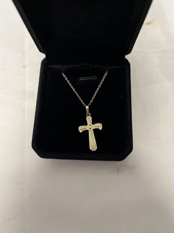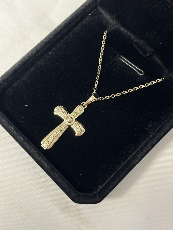 NEW 14K GOLD PLATED 35MM CROSS NECKLACE, ADJUSTABLE CHAIN 18"-19" LONG