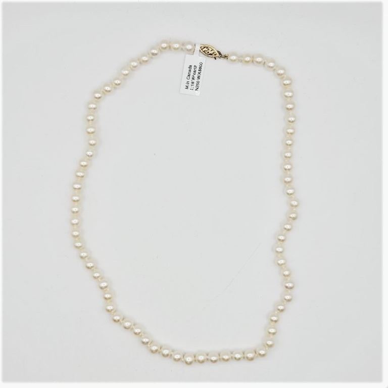 NEW 14KT. YELLOW GOLD 5.4MM - 5.5MM GENUINE CULTURED PEARL NECKLACE, APPROX 73 PEARLS, W/A $890.00