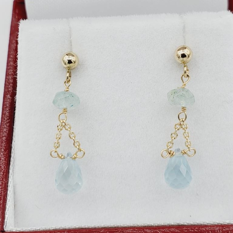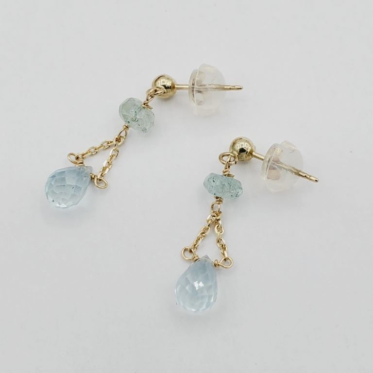 NEW 14KT YELLOW GOLD GENUINE AQUAMARINE BRIOLETTE EARRINGS W/ APPRAISAL $1285
