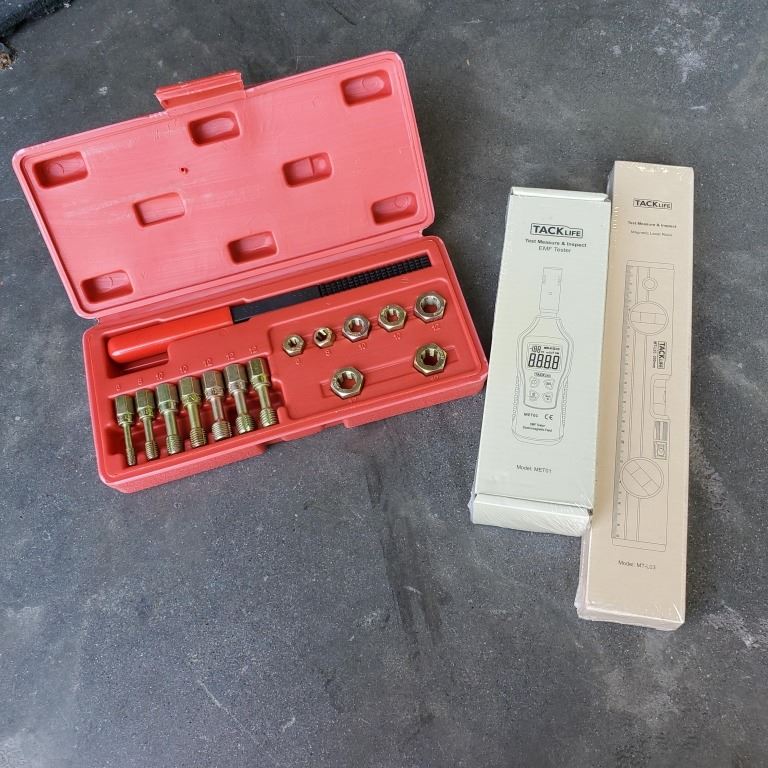 NEW 15 PC METRIC THREAD REPAIR KIT , TACK LIFE MAGNETIC LEVEL RULER AND EMF TESTER