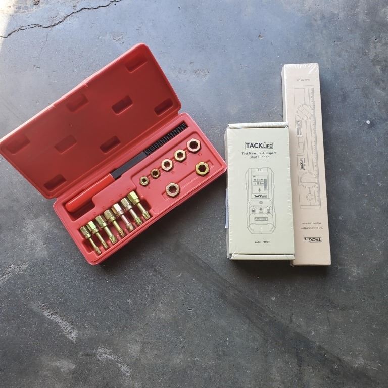 NEW 15 PC METRIC THREAD REPAIR KIT , TACK LIFE STUD FINDER AND MAGNETIC LEVEL RULER