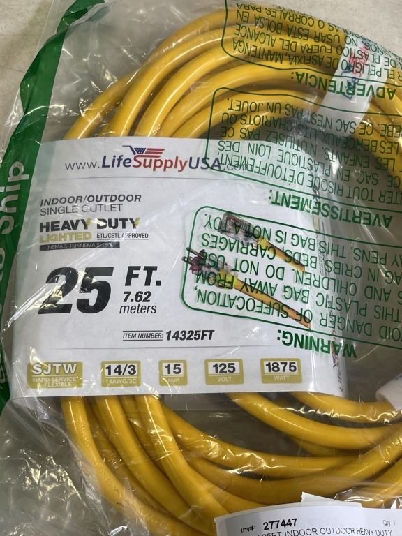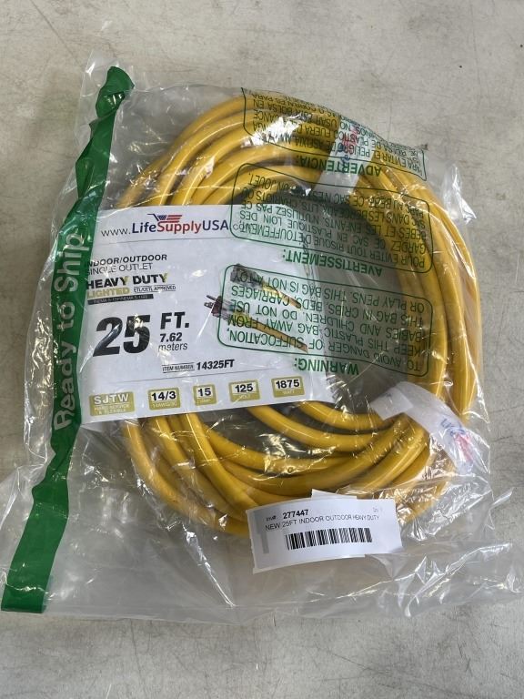 NEW 25FT INDOOR OUTDOOR HEAVY DUTY LIGHTED 3 WIRE EXTENSION CORD, YELLOW 14AWG