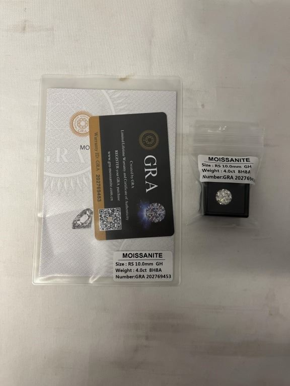 NEW 4.0 CARAT MOISSANITE LAB DIAMOND, ROUND BRILLIANT CUT, GH-VVS1, GRA REPORT, TESTS POSITIVE W/ DI