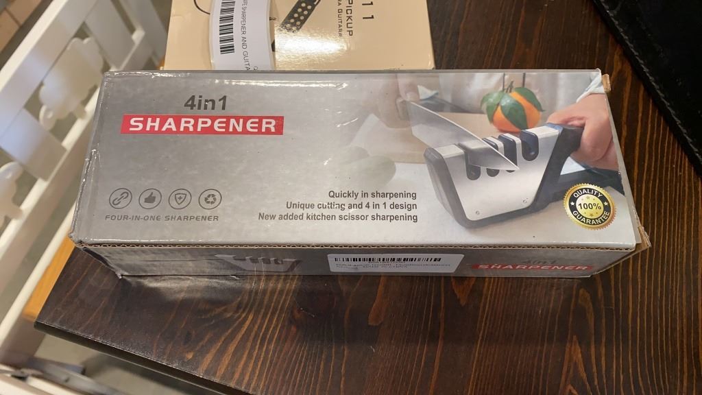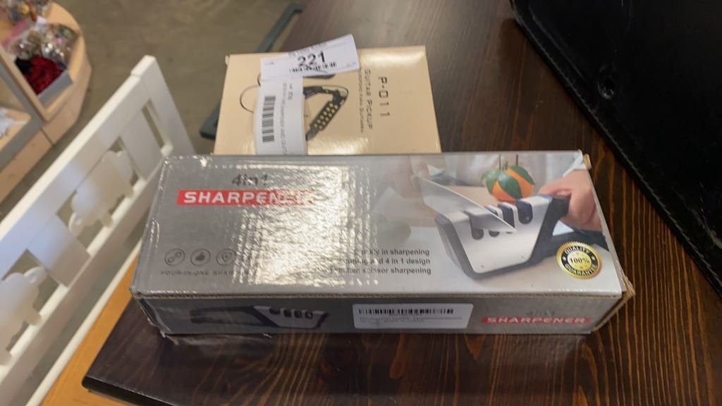 NEW 4 IN 1 KNIFE SHARPENER AND GUITAR PICKUP RETAIL $85