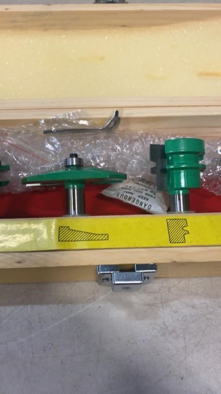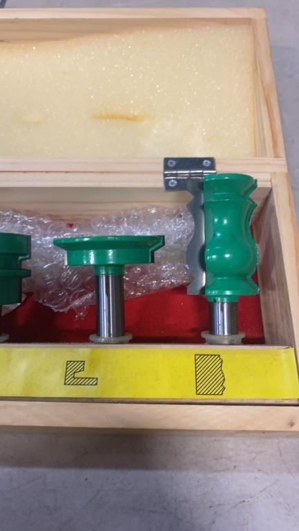 NEW 6 PIECE ROUTER BIT SET - INCLUDES 3 PIECE RAISED PANEL DOOR, DRAWER LOCK, REVERSE GLUE JOINT AND CROWN MOULDING BIT