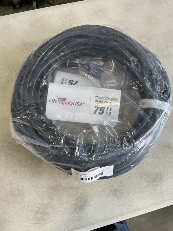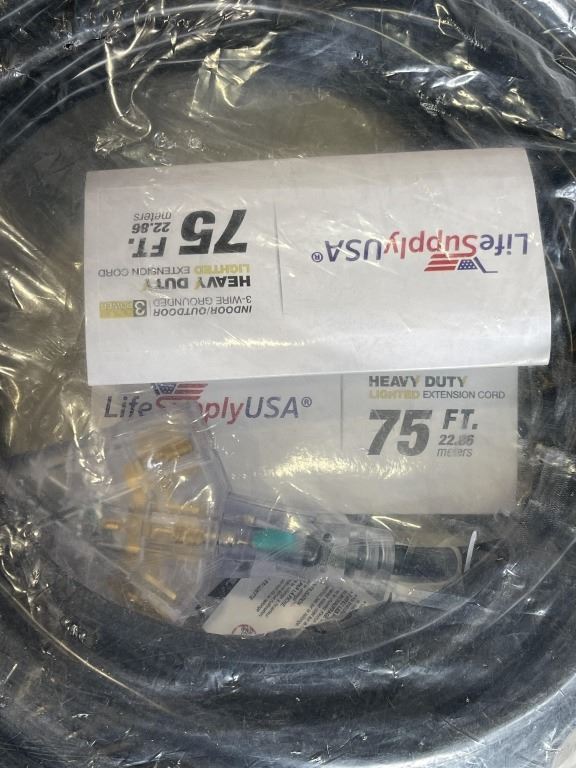 NEW 75FT INDOOR OUTDOOR HEAVY DUTY LIGHTED 3 WIRE EXTENSION CORD, BLACK 12AWG