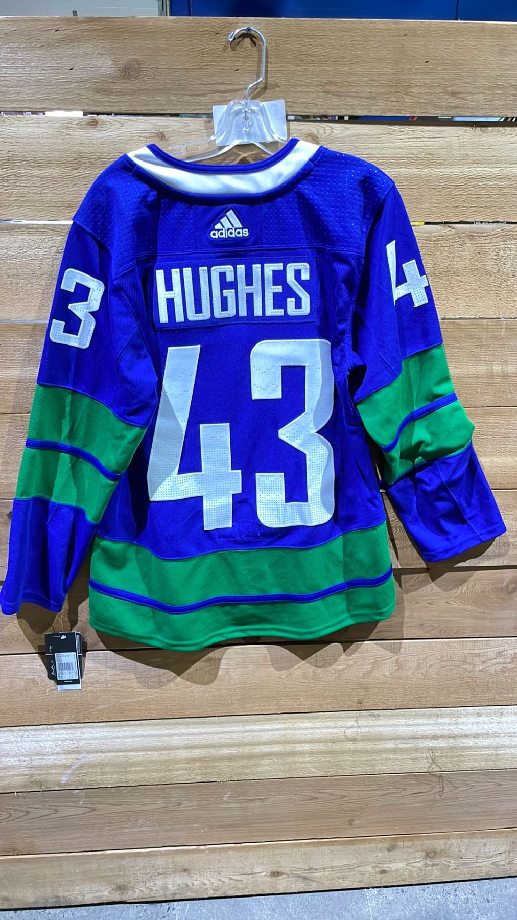 NEW ADIDAS NHL VANCOUVER CANUCKS QUINN HUGHES JERSEY SIZE 42 ALTERNATE JERSEY