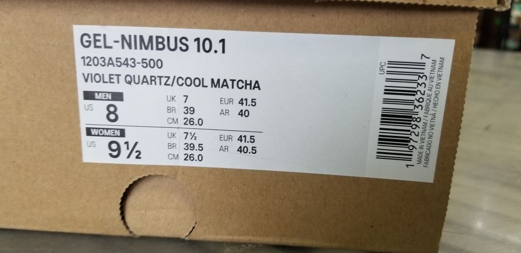 NEW ASICS GEL NIMBUS 10.1 VIOLET QUARTZ/ COOL MATCHA SIZE WOMENS 9.5 MENS 8