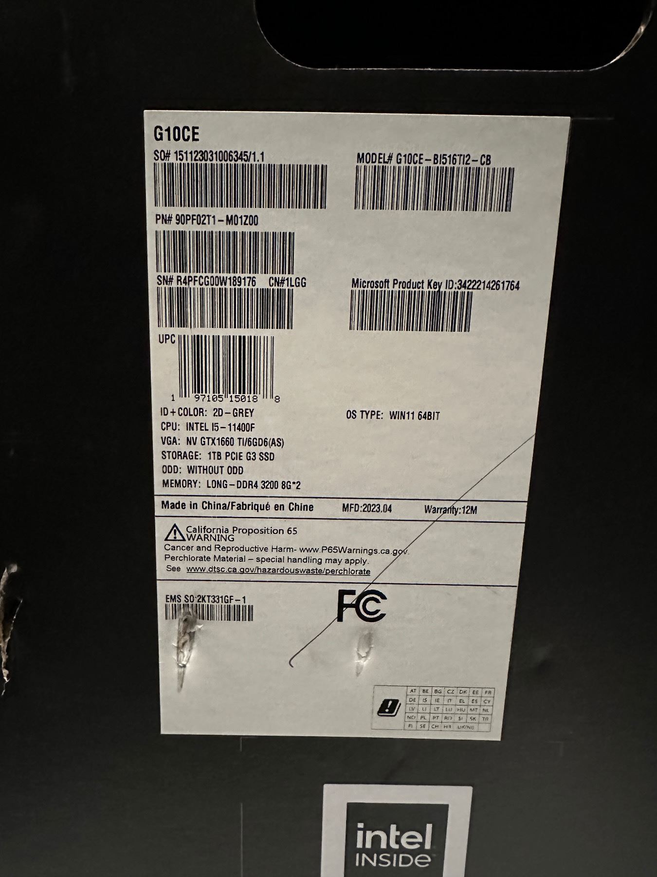 NEW ASUS 2pc Gaming Station - includes 27" TUF gaming VG1A series gaming monitor (retail price $350) w/ NEW ASUS - Republic Of Gamers PC ROG Strix G10CE Gaming PC w/ i5-11400F processor, NVIDIA GTX1660, 1TB PCIE G3 SSD storage, RAM long-DDR4 3200 8G*2, Windows 11 64bit (retail price $1000) - new in boxes - total retail value $1,350