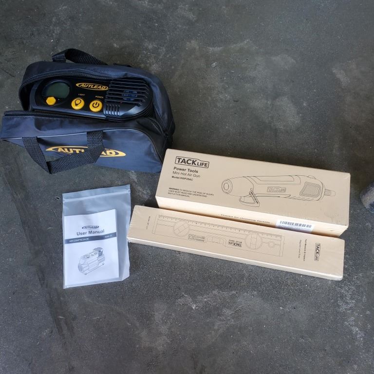 NEW AUTLEAD DC TIRE INFLATOR WITH MINI HOT AIR GUN AND MAGNECTIC RULER
