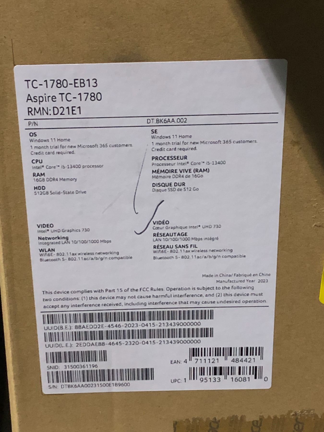 NEW Acer Aspire TC-1780-EB13 Retail - $900 (Intel Core i5-13400/512GB SSD/16GB RAM/Windows 11)
