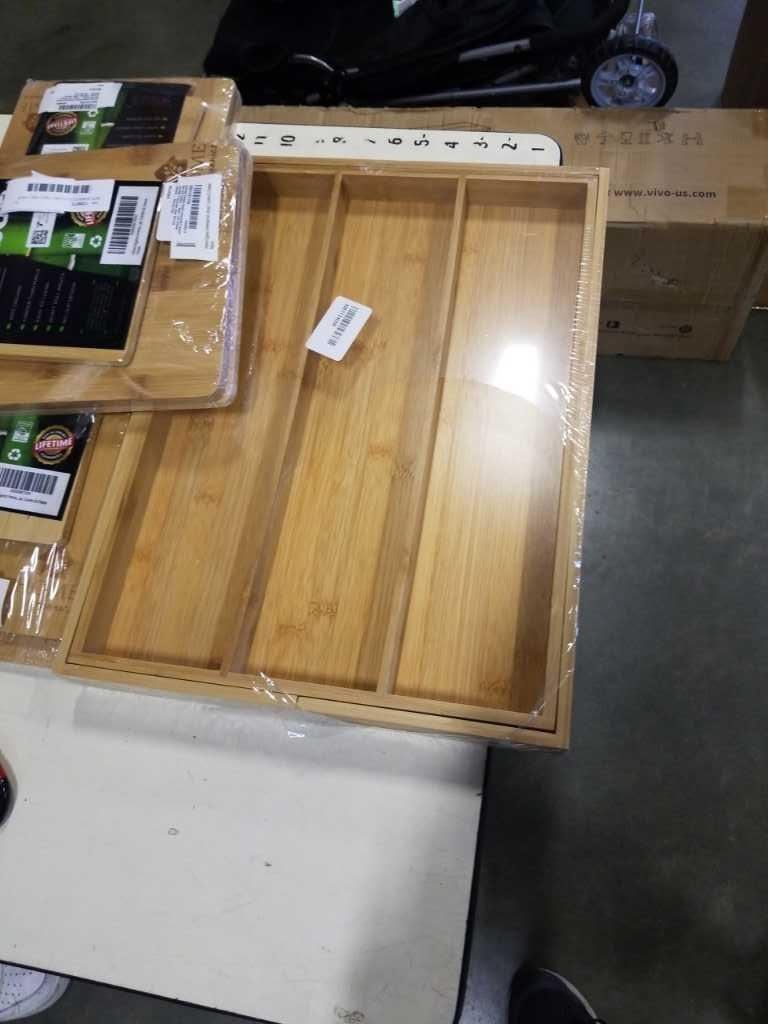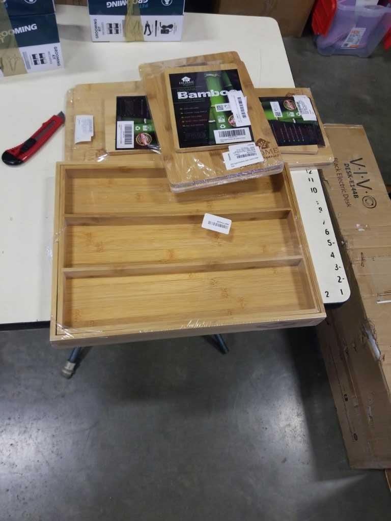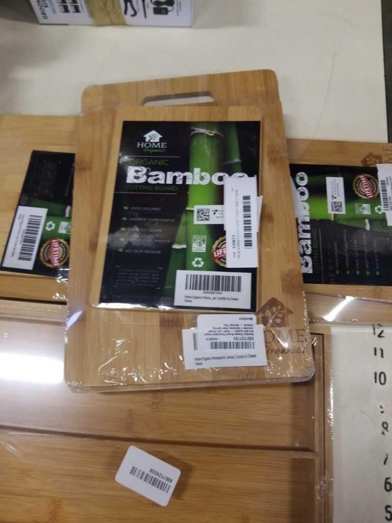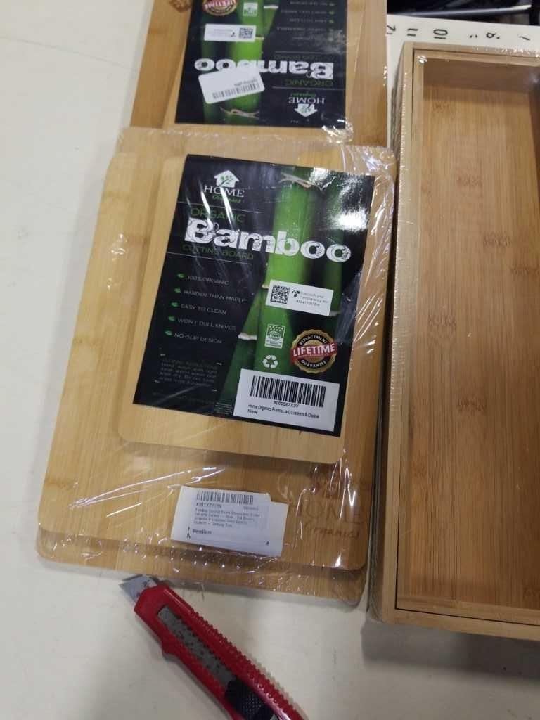 NEW BAMBOO CUTLERY TRAY AND 3 NEW BAMBOO CUTTING BOARD SETS