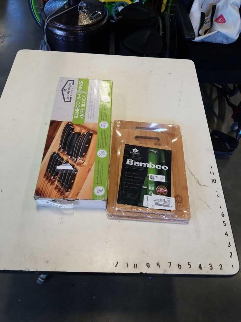NEW BAMBOO KNIFE TRAY AND 3PC BAMBOO CUTTING BOARDS