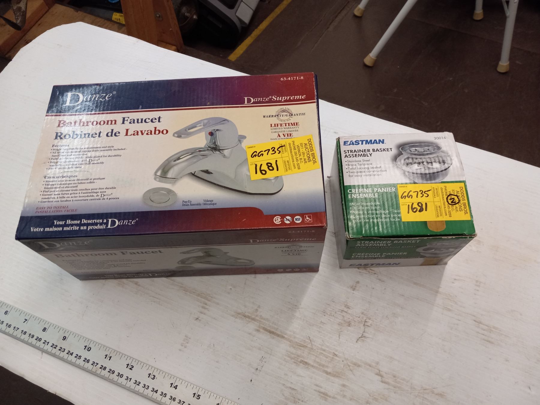 NEW BATHROOM FAUCET SET AND STRAINER BASKET ASSEMBLY