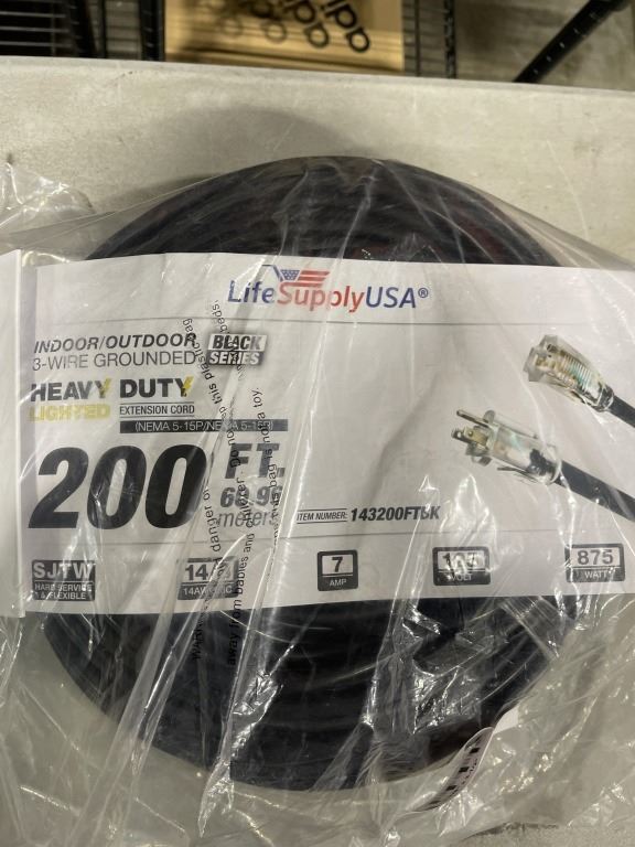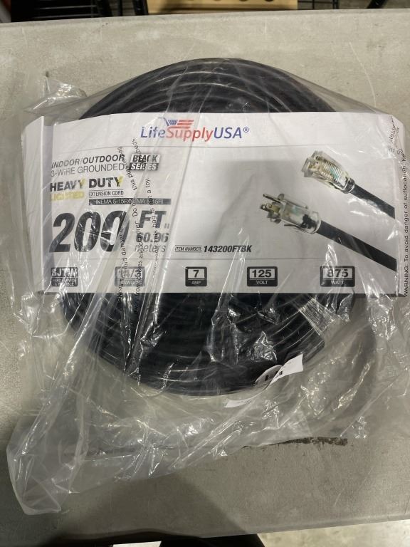 NEW BLACK 200FT INDOOR / OUTDOOR HEAVY DUTY LIGHTED 3 WIRE EXTENSION CORD, 14AWG