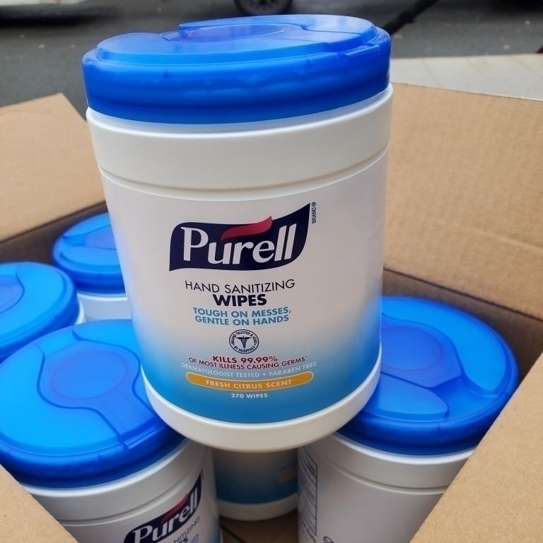 NEW BOX OF 6 TUBS PURELL SANITZING WIPES KILLS 99.9% GERMS 276 WIPES PER TUB RETAIL $140 PER BOX