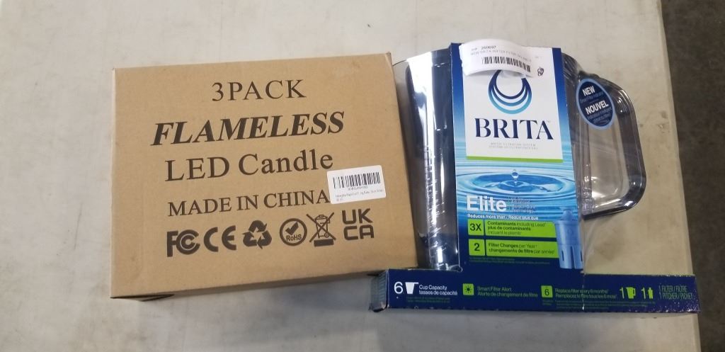 NEW BRITA WATER FILTER JUG, AND 3 PACK OF LED FLAMELESS CANDLES