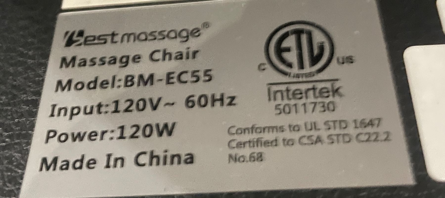 Best Massage Chair w/Canucks branding - model: BM-EC55