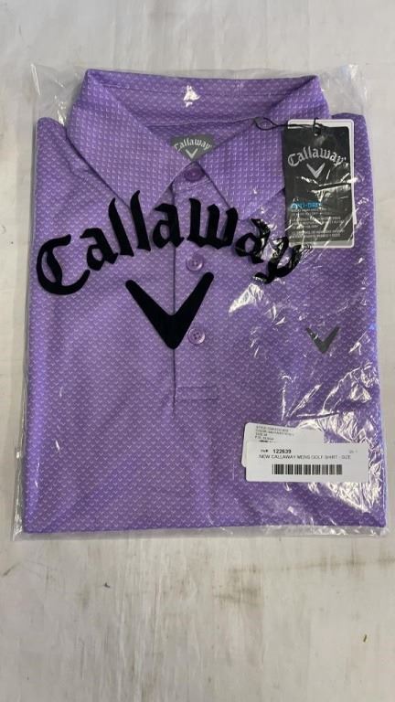NEW CALLAWAY MENS GOLF SHIRT - SIZE MEDIUM, PURPLE, RETAIL $89