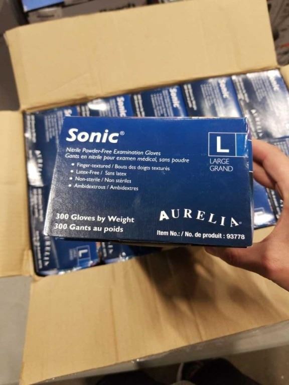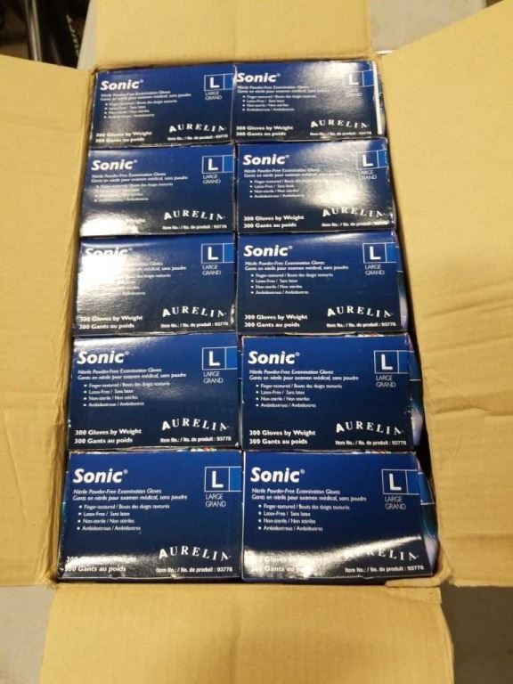 NEW CASE NITRILE POWDER FREE EXAMINTION GLOVES, LATEX FREE, SIZE LARGE, 10 BOXES PER CASE, 3000 GLOVES TOTAL - TOTAL RETAIL $300