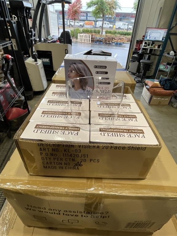 NEW CASE OF 10 PROTECTIVE SHIELD FACE MASKS, HIGH QUALITY, RETAIL $19.99 EACH