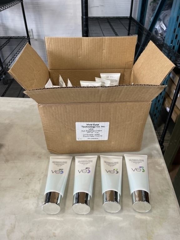 NEW CASE OF 24 EYE ESSENCE CREAM, 200ML BOTTLES, PAST BEST BEFORE