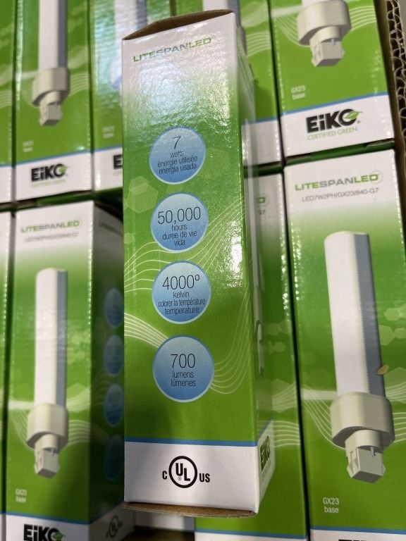 NEW CASE OF 50 EIKO LITE SPAN LED PL TUBE GX23 BULBS