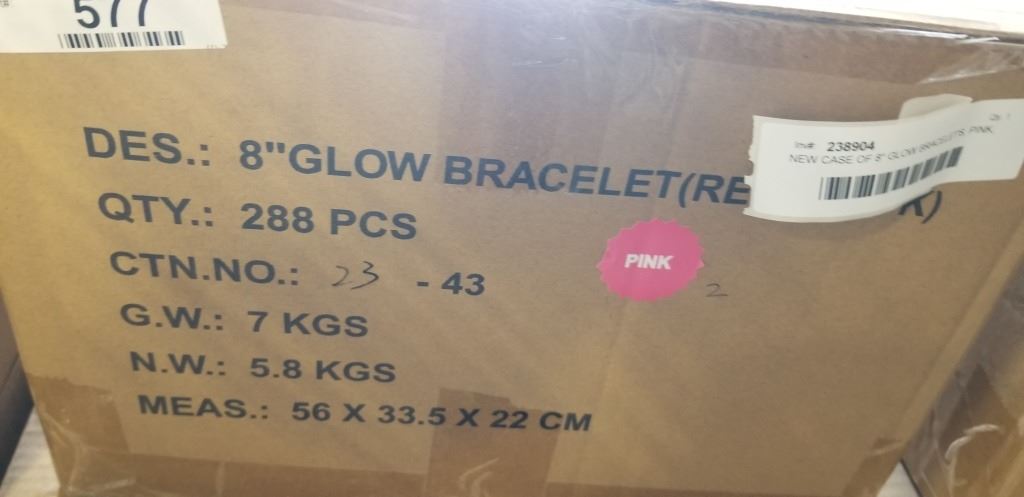 NEW CASE OF 8" GLOW BRACELET'S, PINK, APPROX 288 3-PACKS, 864 TOTAL