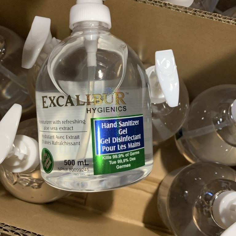 NEW CASE OF EXCALIBUR MOISTURIZING HAND SANITER GEL WITH REFRESHING ALOE VERA EXTRACT, 24 PUMP BOTTLES OF 500ML EACH POER CASE