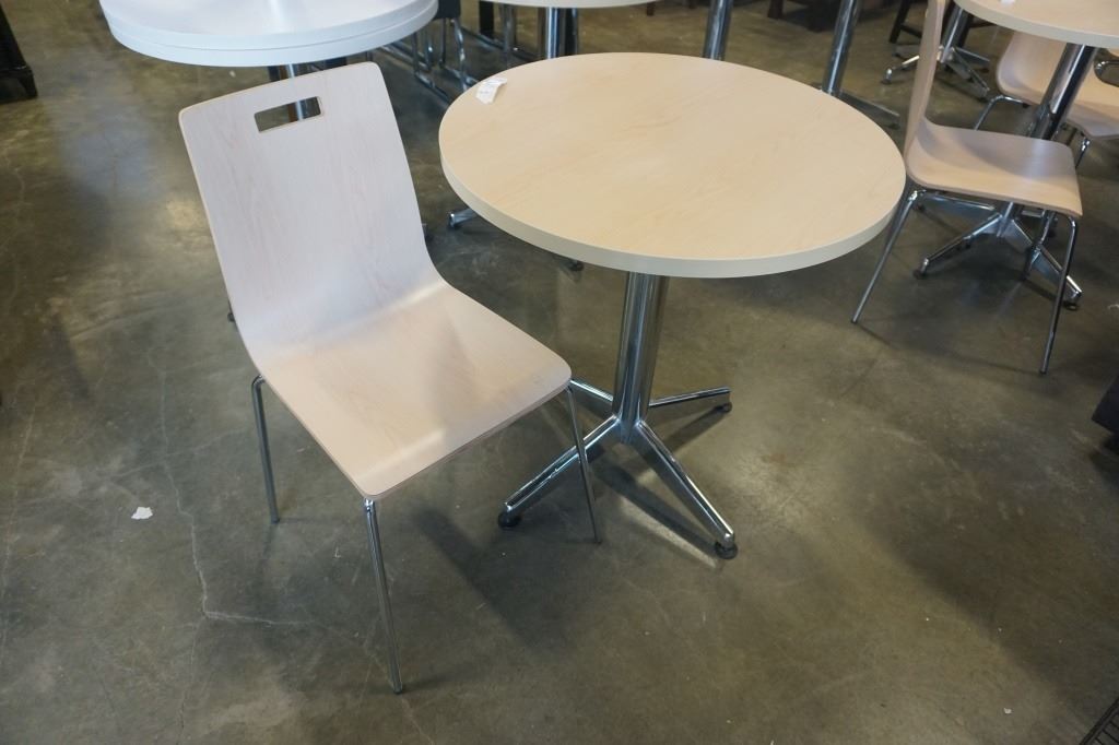 NEW CHROME BASE ROUND PUB/ CAFE TABLE WITH BENTWOOD CHAIR, 30" HIGH 28" DIAMETER