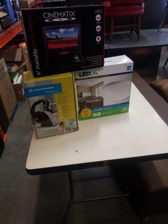 NEW CINEMATIX PORTABLE DVD PLAYER, SENNHEISER WIRELESS HEADPHONES AND LED LIGHT