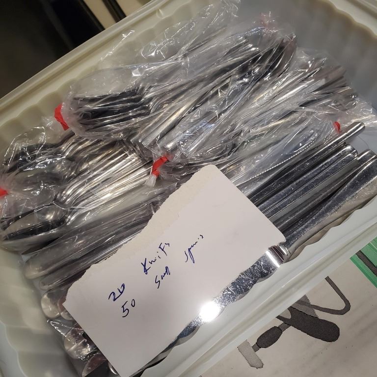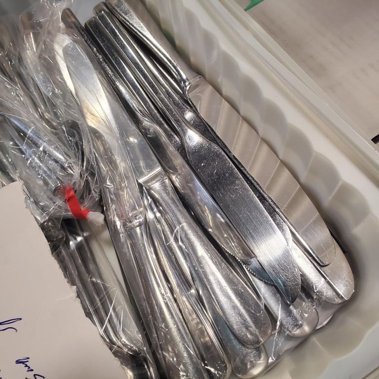 NEW COMMERCIAL GRADE CUTLERY, 20 KNIFES, 50 SMALL SPOONS