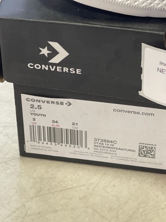 NEW CONVERSE CTAS 1V HI, WHITE SIZE YOUTH 2.5