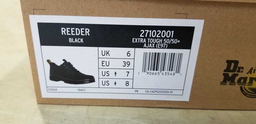 NEW CR. MARTENS REEDER BLACK EXTRA TOUGH 50/50+ SHOES SIZE MENS 7, LADIES 8