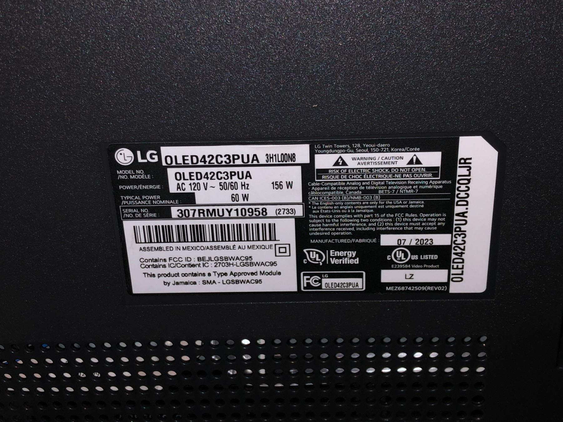NEW DEMO LG OLED evo C3 42 inch 4K Smart TV 2023 OLED42C3PUA - retail $1,299.99 (new demo unit, no box, no legs, with power cable & remote) tested working, scratch on centre screen