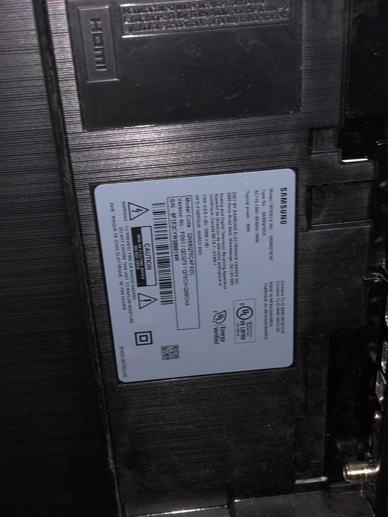 NEW DEMO Samsung 55" Class QLED 4K Q70C QN55Q70CAF - retail $999.99 (new demo unit, no box, no legs, missing power cable & remote) tested working