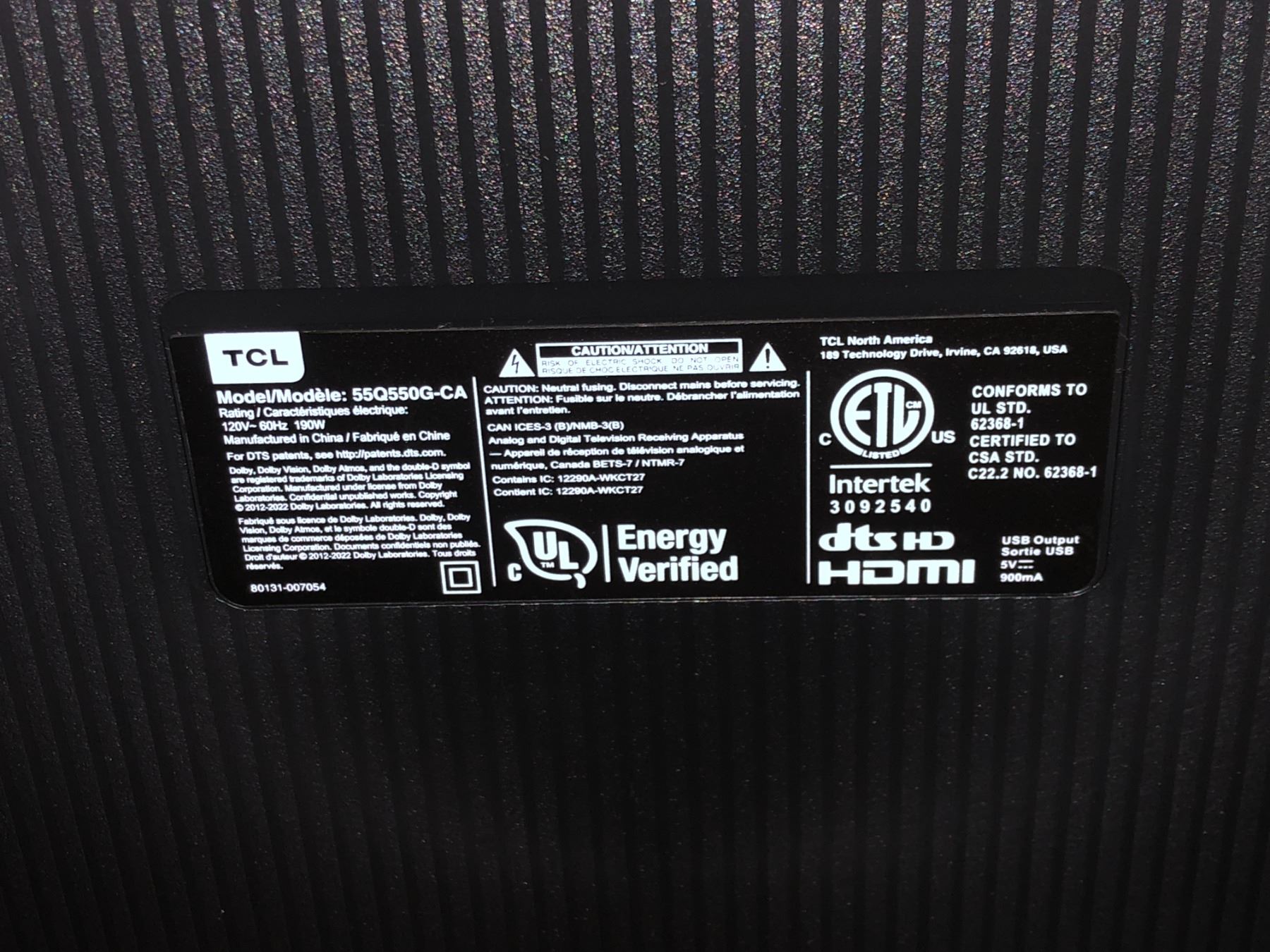 NEW DEMO TCL Q5 55" 4K UHD HDR QLED Google TV Smart TV 55Q550G-CA - retail $449.99 (new demo unit, no box, no legs, missing power cable & remote) tested working