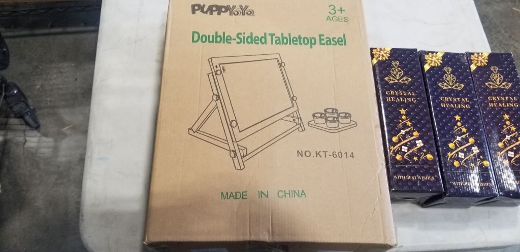 NEW DOUBLE SIDED TABLETOP EASEL AND 3 TIGER'S EYE TREES