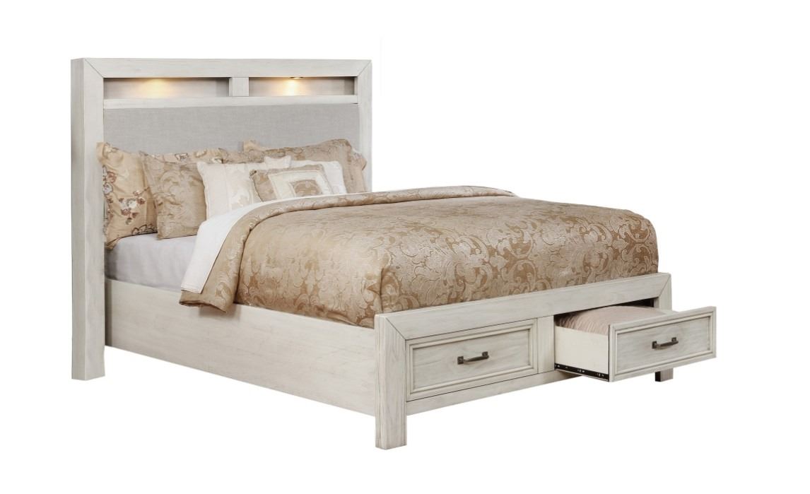 NEW - Darcy Collection White Oak Upholstered Queen Storage Bed (1700W)